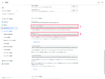 同ページの下に「カレンダーの統合」項目がありますので、任意でカレンダーの一般公開方法をお選びください。