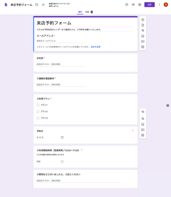 ネットからの来店予約を受け付けるための予約フォームを無料で利用できるGoogleフォームを使って作成します。