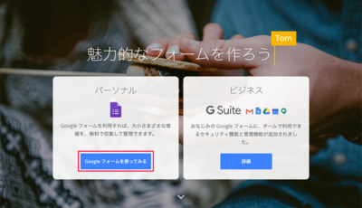 パーソナル(プラン)「Googleフォームを使ってみる」ボタンをクリック