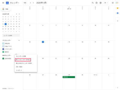Googleカレンダー作成ページはこちら→ https://calendar.google.com/calendar/r